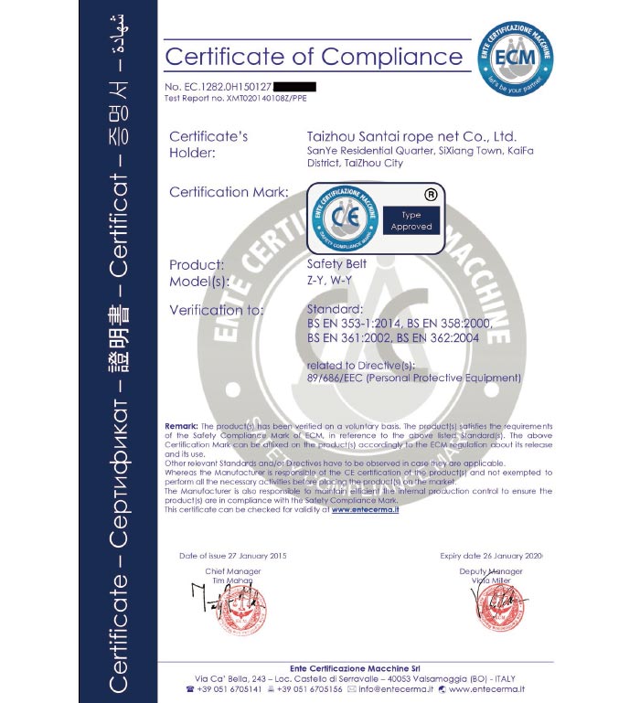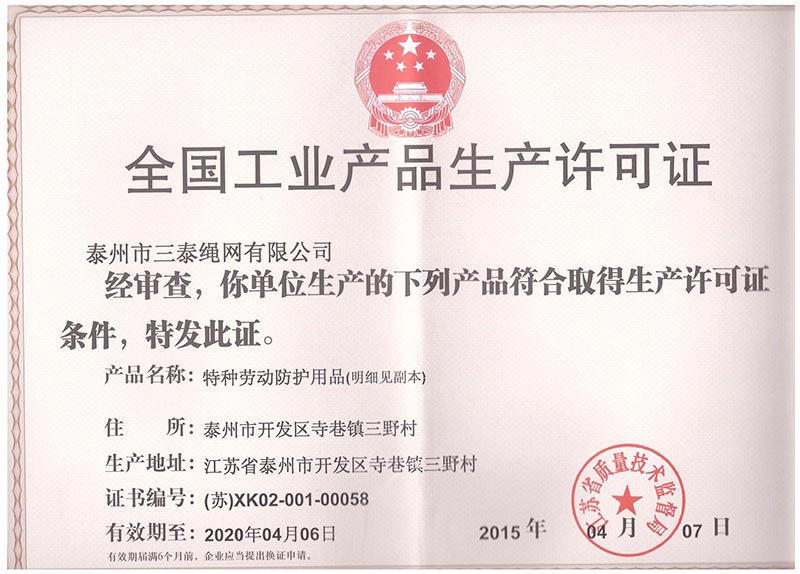 泰州市三泰健康科技有限公司(原 泰州市三泰繩網(wǎng)有限公司),本公司成立于1988年12月22日,至今近30年的生產(chǎn)歷程。多年來(lái)的生產(chǎn)經(jīng)驗(yàn),加之我們不斷的創(chuàng)新,已經(jīng)建設(shè)成為集研制、開(kāi)發(fā)、生產(chǎn)、銷(xiāo)售為一體的龍頭企業(yè)。公司生產(chǎn)線(xiàn)由捻線(xiàn)車(chē)間、制繩車(chē)間、織網(wǎng)車(chē)間、織帶車(chē)間、織(絞)繩車(chē)間、安全網(wǎng)組裝車(chē)間、安全帶組裝車(chē)間、檢驗(yàn)室等組成。企業(yè)現(xiàn)有職工155人,企業(yè)管理人員6名,市場(chǎng)研發(fā)人員8名,專(zhuān)業(yè)質(zhì)檢人員2名,......